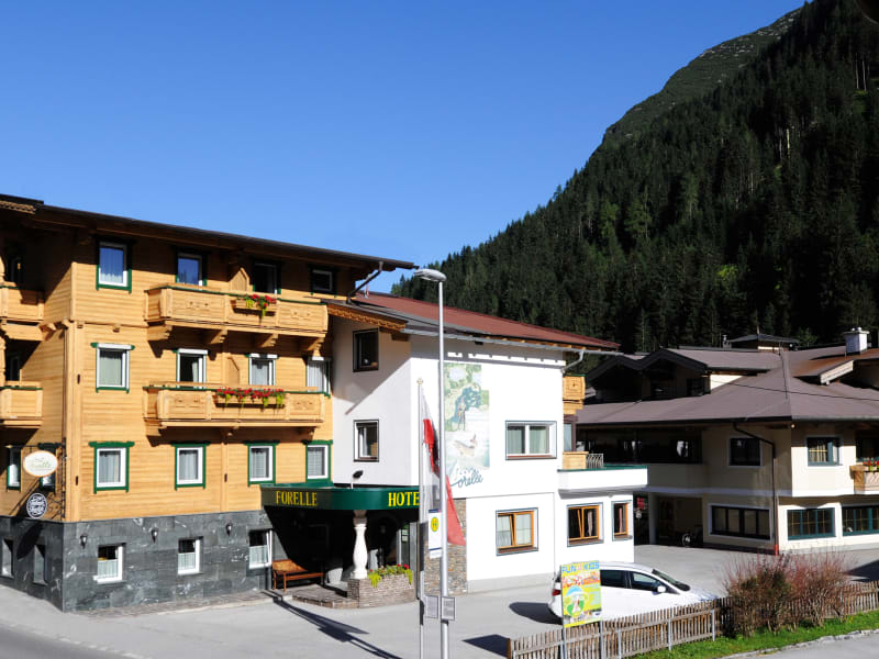 Unser Hotel-Garni Forelle**** befindet sich im schönen Tuxertal mit einem herrlichen Blick auf die Bergwelt des Tuxer Gletschers inmitten saftiger Almwiesen, klaren Bergquellwasser, in allergikerfreier Höhenluft! Die einzigartige Lage bietet allen Berg-und Wanderfreunden,Mountainbikern und Sommerskiläufern im grünen Gletschertal alle Vorzüge. Im Winter sind wir am zentralsten Ort von Tux, direkt in der Nähe der Rastkogelbahn (Skigebiet Zillertal 3000), neben der Langlaufloipe, Sportgeschäft, Playarena und direkt an der Sportbushaltestelle der Sie kostenlos zum Hintertuxer Gletscher bringt.