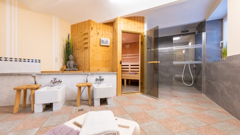 Um Untergeschoss des Hotels befindet sich eine Sauna.