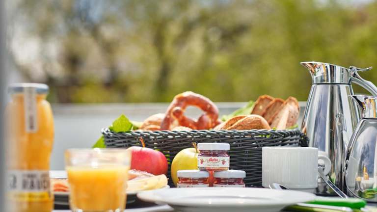 Morgens erwartet die Gäste ein reichhaltiges Frühstück in einem der drei Speisesäle des Gasthofs. Hier können sich die Gäste für den Tag stärken und mit Energie versorgen.