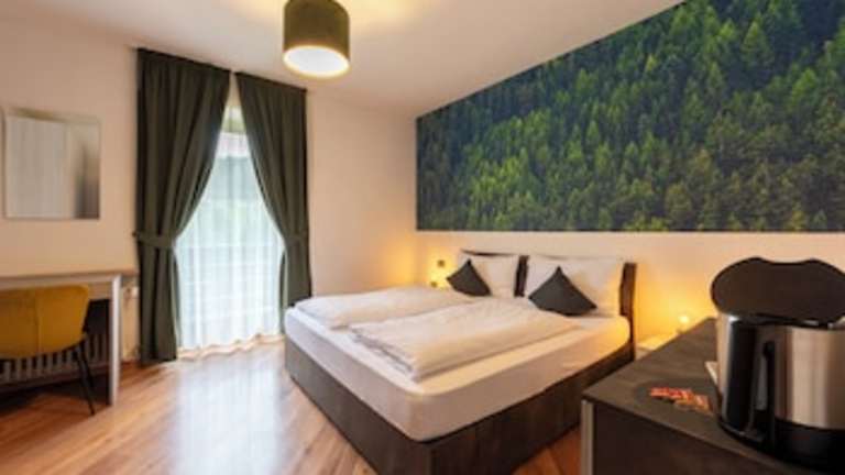 Die Zimmer bieten in der Regel einen Balkon mit Bergblick. Zur Ausstattung gehören ein eigenes Bad mit Dusche, ein Haartrockner, ein TV-Gerät sowie kostenloses WLAN. Für besondere Bedürfnisse sind rollstuhlgerechte Zimmer verfügbar.