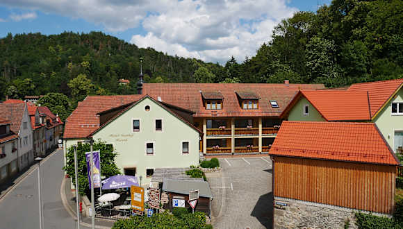 Im hoteleigenen Restaurant können die Gäste eine Auswahl an fränkischen Spezialitäten, herzhaften Snacks und leichten Gerichten genießen. Das Restaurant bietet eine traditionelle Atmosphäre und ist der perfekte Ort, um ein erfrischendes Bier oder einen erlesenen Wein zu genießen. Während der warmen Sommermonate können die Gäste ihre Mahlzeiten und Getränke auch im Biergarten genießen.