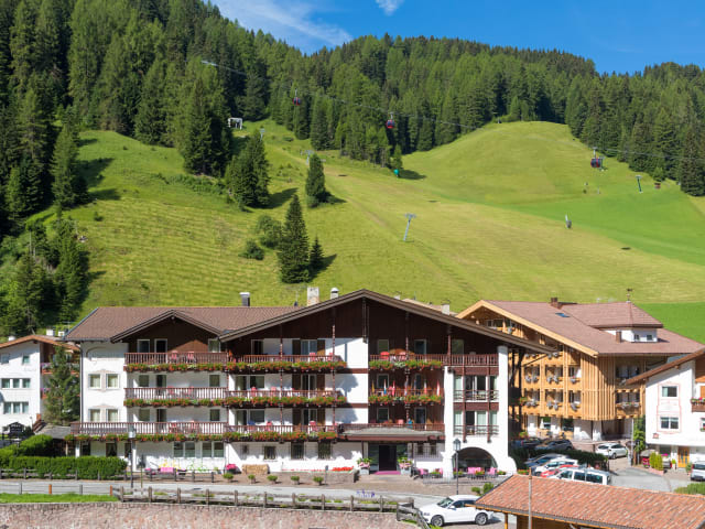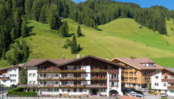 Das Hotel Genziana befindet sich zentral in Wolkenstein in Gröden und liegt direkt am Skigebiet Ciampinoi. Die Ortschaft St. Ulrich ist 8 km entfernt.
