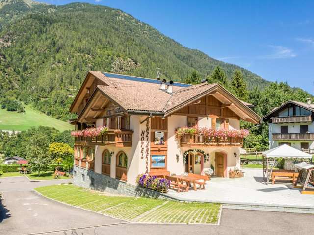 Das Hotel Genzianella befindet sich in Commezzadura im Val di Sole, nur 400 m vom Skigebiet Daolasa entfernt. Die Lage ist ideal für Skifahrer, da ein kostenloser Skibus zur Verfügung steht, der Sie direkt zum Skigebiet bringt. Auch Naturliebhaber kommen hier auf ihre Kosten, da die Umgebung viele Möglichkeiten zum Wandern und Radfahren bietet. Der Regionalbahnhof Daolasa ist nur 400 m entfernt und bietet eine bequeme Anbindung an die Stadt Trient.