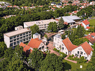Das Hotel ist auf einer leichten Anhöhe gelegen, von Wald und Wiesen eingerahmt und 500m von der Gersfelder Innenstadt entfernt. Naturfreunde, Ruhe suchende sowie sportlich Aktivere Zeitgenossen werden sich hier wohlfühlen. Es liegt am Fuße der Wasserkuppe mit 950m der höchste Berg Hessens. Trotzdem bietet es eine gute Verkehrsanbindung an die A7 und B279.