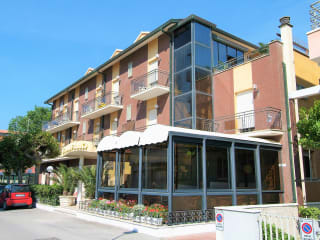 Unser Angebot: Kostenlose Benutzung von Fahrrädern, Fernsehraum, Bar, klimatisierter Speisesaal, Solarium, breite Aussenterrasse mit Relaxraum mit kostenlosem WI-FI Service, Panoramalift, eingezäunter Parkplatz. Zimmer mit Duschkabine, Telefon, Sat-TV, Safe, Fön und freier Klimaanlage. Reichhaltiges Frühstücksbüffet (süß und salzig), Mittag- und Abendessen mit Menüwahl (Fisch und Fleisch), Gemüsebüffet, Meeresfrüchtespezialitäten, hausgemachte Nudeln und Piadina (eine Art Brot aus unserer Region). Jeden Sonntag Aperitif auf der Terrasse! Regelmäßige Parties. Zubehör für Kinder im Zimmer und im Speisesaal: Campingliege, Babybadewannen, Fläschchenwärmer, Bettgitter, Toilettenaufsatz, Hochstühle, Stuhlaufsätze, kindgerechte Gläser und Besteck, Fahrräder mit Kindersitz, kostenlos frische Milch, Kinderplätze. Strandservice: Baby und Mini Club, Kindergarten, Baby dance, Snack-Party für alle Kinder, Gymnastik, Unterhaltung für Kinder und Erwachsene, lateinamerikanische Tänze und Gruppentänze.