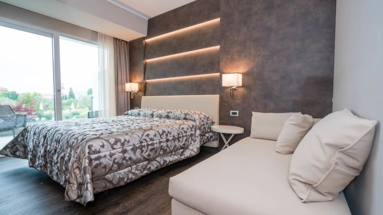 Das Hotel Giulietta Romeo*** wurde kürzlich renoviert und mit 24 Superior Zimmer mehr erweitert. Es liegt in einem großen Park, umgeben von Bäumen, und befindet sich nur 200 Meter von der Altstadt von Lazise entfernt. Das Hotel verfügt über 44 modern eingerichtete und mit allem Komfort ausgestattete Zimmer mit 6 verschiedenen Zimmertypen. Alle die Zimmer haben Balkonen unterschiedlicher Größe, einige haben Blick auf den Swimmingpool des Hotels und auf die Scaliger Schloss. Alle sind mit einem elektronischen Schlüssel zugänglich und verfügen über Parkettboden, Klimaanlage, Safe mit elektronischer Kombination, Minibar, Flachbild-Sat-TV mit italienischen und internationalen Programmen und Direktwahltelefon. In unseren Zimmern finden Sie ausgesuchte Bettwäsche mit täglichem Housekeeping, Badezimmer mit Dusche, Haartrockner und kostenlose Toilettenartikeln mit Olivenölprodukten. Kostenloser WLAN-Zugang im ganzen Eigentum. Auf Wunsch ist ein externer Wäscheservice verfügbar, der direkt an der Rezeption gebucht werden kann.