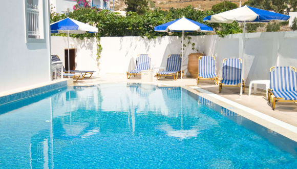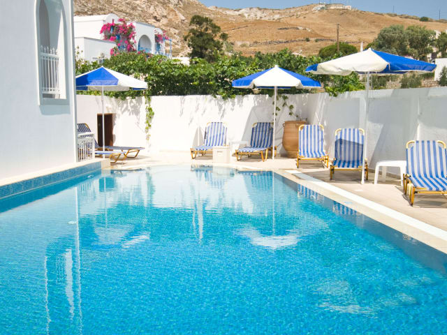 Das Hotel Glaros ist ein 3-Sterne Hotel in Kamari - Santorini mit insgesamt 25 Zimmern und wird mit der traditionellen Gastfreundschaft der Eigentuemerfamilie gefuehrt. Der Suesswasserpool mit Jacuzzi laedt zum Relaxen ein.