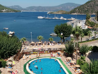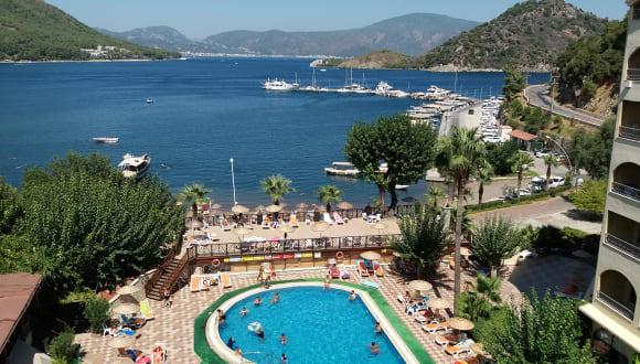 Das Hotel Golmar Beach in Içmeler ist ein ideales Urlaubsziel für Paare und Familien, die einen entspannten und angenehmen Aufenthalt in der Nähe des Strandes genießen möchten. Mit seinen komfortablen Zimmern, dem freundlichen Personal und dem vielfältigen gastronomischen Angebot bietet das Hotel alles, was man für einen gelungenen Urlaub braucht. Die schöne Außenpoolanlage und der Wellnessbereich sorgen für zusätzliche Entspannung und Erholung.