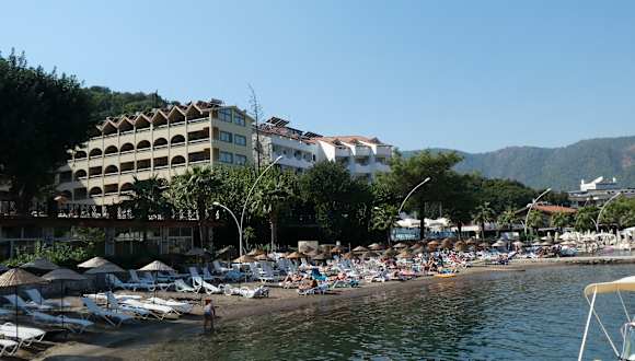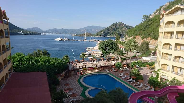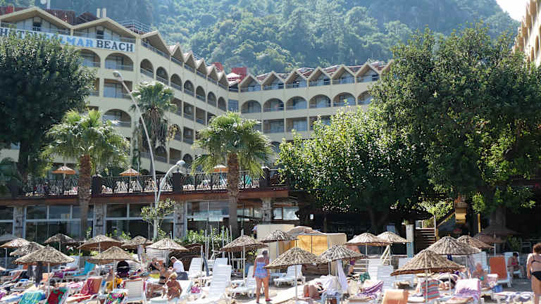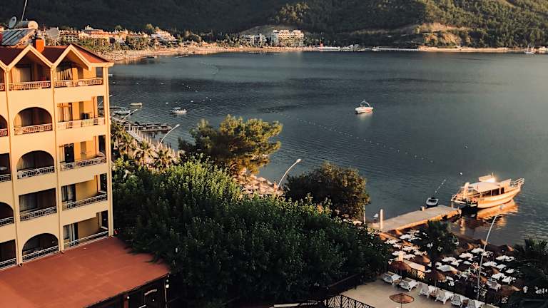 Das Hotel Golmar Beach befindet sich in Içmeler und liegt direkt am Sandstrand. Von hier aus haben die Gäste einen wunderbaren Blick auf das Meer und können die Sonne und das Meer in vollen Zügen genießen. Das Hotel liegt auch in der Nähe des Stadtzentrums, wo es zahlreiche Einkaufs- und Unterhaltungsmöglichkeiten gibt. Der Flughafen ist ca. 100 km entfernt.