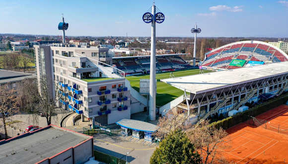 Das Hotel Gól garni liegt direkt im Sportbereich des SK Sigma Olomouc und bietet somit eine ideale Lage für Sportfans. In unmittelbarer Nähe finden Sie verschiedene Sport- und Freizeiteinrichtungen, darunter Tennisplätze und ein Schwimmbad. Die Parkplätze vor dem Hotel sind kostenlos und ermöglichen eine bequeme Anreise mit dem Auto. Die Straßenbahn- und Bushaltestellen sind nur 5 Gehminuten entfernt und der nächste Bahnhof ist 2 km entfernt.
