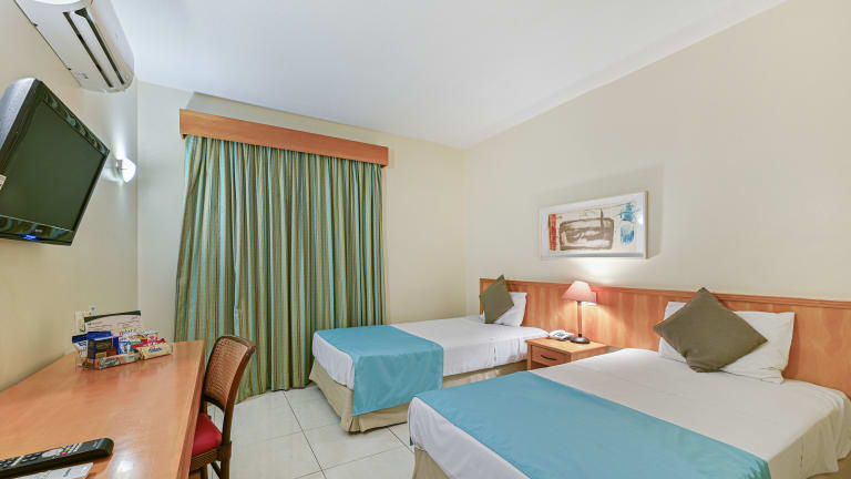Die Zimmer sind mit Klimaanlage und Heizung ausgestattet, bieten ein Doppelbett oder ein Queensize-Bett und sind teilweise mit getrennten Schlafzimmern ausgestattet. Zur Standardausstattung gehören ein Safe, eine Minibar, ein Schreibtisch und ein Kühlschrank. Die Zimmer verfügen über ein Telefon mit Direktwahl, einen Fernseher mit Satelliten- oder Kabelanschluss sowie kostenfreies WLAN. Die Badezimmer sind mit einer Dusche und einer Badewanne ausgestattet und beinhalten Haartrockner sowie Kosmetikartikel. Rollstuhlgerechte Zimmer sind ebenfalls verfügbar.