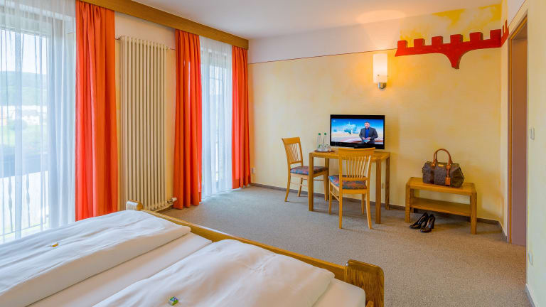 Die 21 gemütlichen Zimmer im Hotel Goldenes Fass in Freudenberg am Main sind eingerichtet mit Dusche, WC, Fernseher und teilweiße mit einem traumhaften Himmel über dem Bett. Davon sind sieben Zimmer als B&B buchbar. Wir möchten, dass alle sich bei uns rund um wohlfühlen und bieten für unsere Gäste 4 verschiedene Zimmerkategorien an. Alle Zimmer sind Doppelzimmer welche auch zur Einzelnutzung buchbar sind. Manche verwöhnen Sie mit einem charmanten französischen Balkon, Blick zur Burg und Andere mit einem Blick auf den Main. W-Lan, Mineralwasser, Duschgel, Kosmetiktücher und Zahnputzbecher sind für alle Hotelgästen kostenfrei.