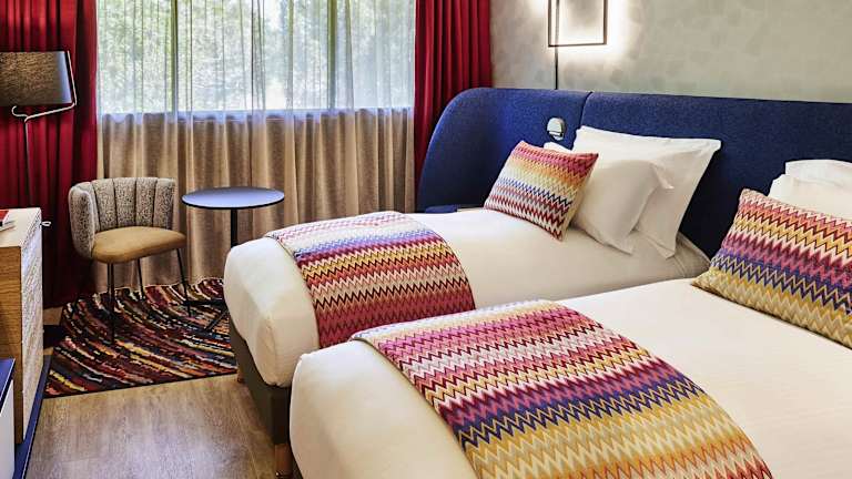 Die Zimmer im Hotel sind hell und komfortabel gestaltet, alle mit klimatisierter Ausstattung und eigenem Bad. Die meisten Zimmer verfügen über einen Balkon. Ausgestattet sind sie mit einem Doppelbett, einem Safe, einer Minibar, einem Schreibtisch sowie Tee- und Kaffeezubereitungsmöglichkeiten. Zu den Annehmlichkeiten gehören außerdem ein Bügelset, Telefon, Fernseher und WLAN-Zugang. Rollstuhlgerechte Zimmer stehen ebenfalls zur Verfügung.