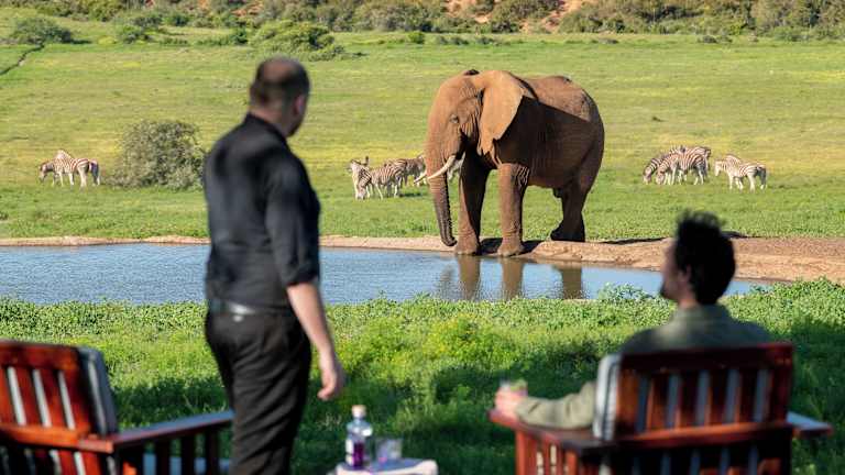 Das Gorah Elephant Camp befindet sich im Addo Elephant National Park, einem malariafreien Gebiet. Das Camp erstreckt sich über ein 4.500 Hektar großes Wildschutzgebiet und bietet einen atemberaubenden Blick auf ein Wasserloch, an dem regelmäßig wilde Tiere, darunter Elefanten, Nashörner und Löwen, zu sehen sind. Die Umgebung lädt zu Pirschfahrten ein, bei denen Sie die Tierwelt hautnah erleben können. Die Stadt Grahamstown mit ihren beeindruckenden Architekturbeispielen ist ebenfalls einen Besuch wert und liegt etwa 109 km entfernt. Der Flughafen Port Elizabeth ist ca. 70 km entfernt.