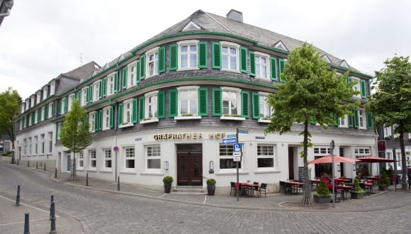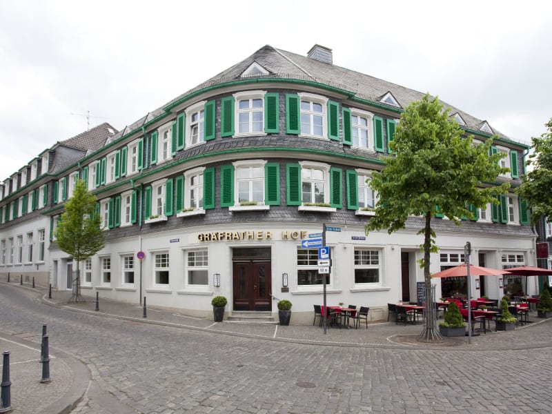 Das Hotel Gräfrather Hof liegt rund 4 km vom Stadtzentrum Solingen entfernt und bietet Ihnen damit einen hervorragenden Ausgangspunkt für Ihren Aufenthalt im Städtedreieck Solingen-Wuppertal-Düsseldorf. Die Autobahn A46 erreichen Sie innerhalb von 5 Minuten und der nächste Bahnhof lässt sich problemlos mit dem Taxi oder den öffentlichen Verkehrsmitteln in kurzer Zeit anfahren. Möchten Sie mit dem Flugzeug an- oder abreisen, so nutzen Sie die Flughäfen Düsseldorf, Köln oder Dortmund. Der historische Ortskern Gräfrath ist nicht nur für das in Deutschland einmalige Klingenmuseum und das Kunstmuseum bekannt, sondern bietet ebenfalls mit seinen liebevoll restaurierten Bergischen Fachwerkhäusern und den malerischen, engen Gassen rund um den idyllischen Marktplatz ein schönes Ausflugsziel für einen gemütlichen Spaziergang.