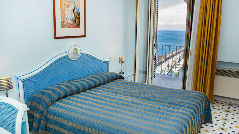 Die Zimmer im Hotel Gran Paradiso sind geschmackvoll eingerichtet und verfügen über geflieste Böden und moderne künstlerische Möbel. Einige Zimmer bieten einen Balkon mit herrlichem Berg- oder Meerblick.