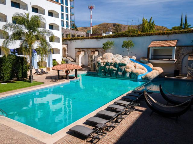 Das Hotel Gran Plaza & Convention Center in Guanajuato bietet einen entspannten Aufenthalt in einer tropischen Umgebung. Mit kostenfreiem WLAN und Parkplätzen sowie einem Außenpool ist dieses Hotel ideal für Reisende, die Komfort und Bequemlichkeit suchen. Das Hotel bietet auch einen Shuttleservice zum Stadtzentrum und zum Flughafen, um Ihren Aufenthalt so angenehm wie möglich zu gestalten.