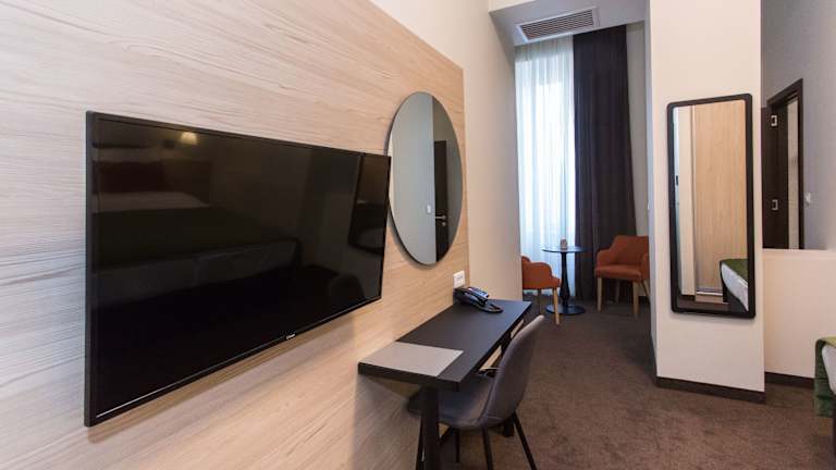 Die Zimmer im Hotel Grand Hedonist sind mit einem Schreibtisch und einem Flachbild-TV ausgestattet. Sie verfügen über einen Safe, Bettwäsche und Handtücher. Ausgewählte Zimmer bieten einen Balkon, während andere Zimmer zudem einen Blick auf die Stadt ermöglichen.
