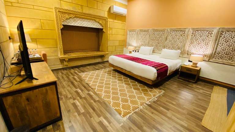 Das Hotel Grand Khalifa liegt nur 800 m von der beeindruckenden Festung Jaisalmer entfernt. In der Nähe finden Sie auch beliebte Sehenswürdigkeiten wie Salim Singh Ki Haveli, Patwon Ki Haveli und den See Gadisar. Der Flughafen Jaisalmer ist nur 4 km entfernt, sodass Sie bequem anreisen können.