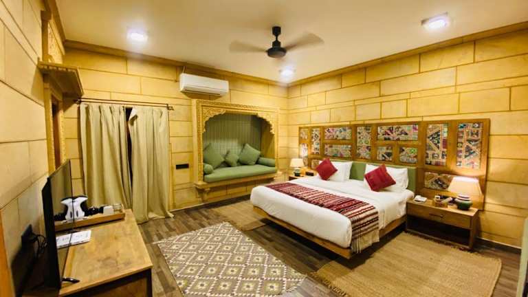 Das Hotel Grand Khalifa in Jaisalmer bietet eine komfortable Unterkunft mit einem Außenpool und kostenfreien Privatparkplätzen. Genießen Sie den atemberaubenden Stadtblick von den Zimmern und lassen Sie sich im hoteleigenen Restaurant kulinarisch verwöhnen. Das freundliche Personal steht Ihnen rund um die Uhr zur Verfügung und sorgt dafür, dass Ihr Aufenthalt unvergesslich wird.