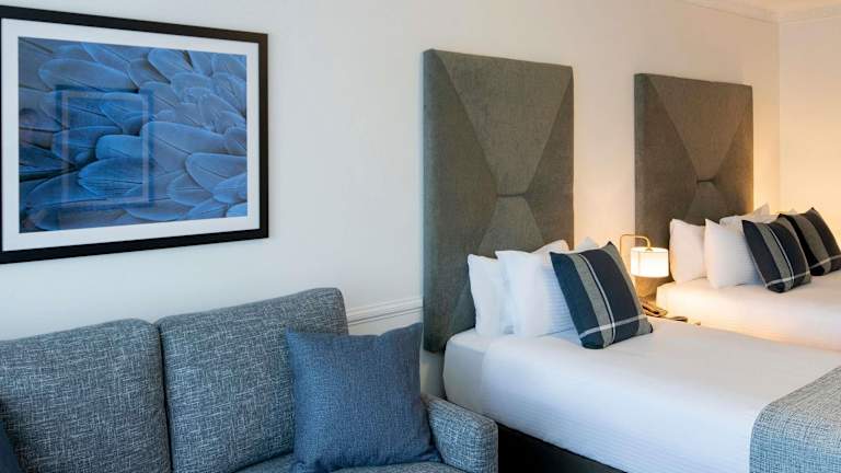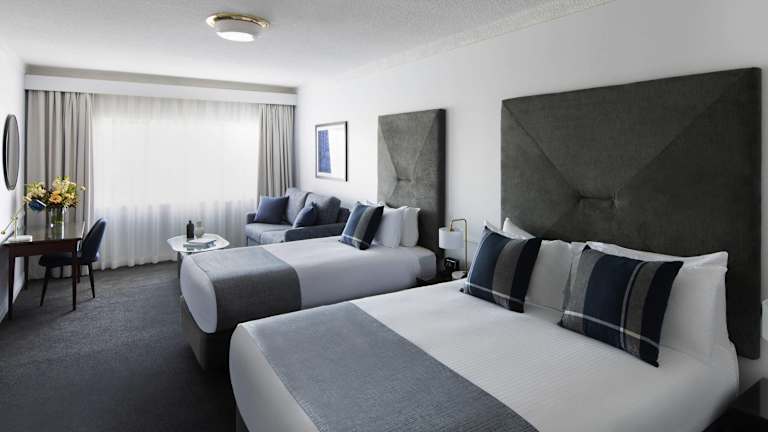 Die Zimmer sind klimatisiert und beheizt und verfügen meist über einen Balkon. Sie sind mit einem Doppelbett, einem Safe, einem Schreibtisch sowie einem Kühlschrank, Herd, Mikrowelle und Tee-/Kaffeemaschine ausgestattet. Ein Bügelset, ein Telefon, Satelliten-/Kabel-TV und WiFi sind ebenfalls vorhanden. Die Badezimmer sind mit einer Dusche und Badewanne sowie Haartrockner und Kosmetikartikeln ausgestattet. Rollstuhlgerechte Zimmer und Familienzimmer sind ebenfalls buchbar.