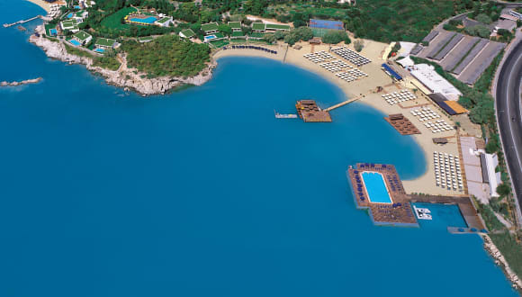 Das Hotel Grand Resort Lagonissi befindet sich auf einer circa 30 Hektar großen Halbinsel in Attika, umgeben von sandigen Buchten und dem blauen ägäischen Meer. Der internationale Flughafen Eleftherios Venizelos liegt etwa 20 Minuten entfernt, während das Stadtzentrum von Athen in rund 30 Minuten zu erreichen ist. Die Entfernung zum Golfplatz beträgt ca. 21 Kilometer.
