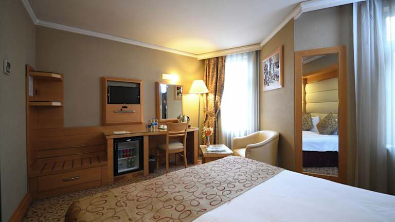 Das Grand Star Hotel bietet 118 Nichtraucherzimmer auf 6 Etagen. Die Zimmer sind modern und komfortabel eingerichtet und verfügen über Annehmlichkeiten wie einen Flachbild-TV, kostenfreies WLAN und einen Schreibtisch. Einige Zimmer bieten zudem einen atemberaubenden Blick auf den Bosporus.