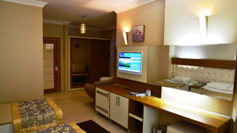 Das Hotel Grand Zaman Garden befindet sich in Alanya und bietet eine erstklassige Lage direkt am Strand. Der feinsandige Sandstrand 'Public Beach' ist nur 150 m entfernt und kann bequem zu Fuß erreicht werden. Die Umgebung des Hotels bietet zahlreiche Einkaufsmöglichkeiten, Restaurants und Bars. Die Entfernung zum Flughafen Antalya beträgt etwa 120 km und das Stadt- und Ortszentrum von Alanya ist ca. 800 m entfernt. Eine Bushaltestelle befindet sich direkt vor dem Hotel, so dass Sie bequem die umliegenden Sehenswürdigkeiten erkunden können.