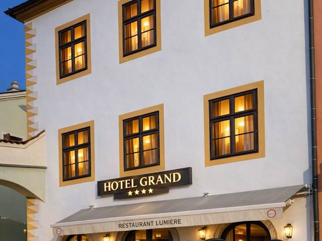 Das Hotel Grand ist ein charmantes Hotel im Herzen von Český Krumlov, das in einem denkmalgeschützten Gebäude direkt am historischen Hauptplatz liegt. Hier erwartet Sie eine komfortable Unterkunft mit kostenfreiem WLAN und einem leckeren Frühstücksbuffet. Das Hotelrestaurant verwöhnt Sie mit tschechischen und internationalen Spezialitäten. Genießen Sie Ihre Mahlzeiten und den herrlichen Ausblick auf den Hauptplatz. Die Lage des Hotels ist ideal, um die Sehenswürdigkeiten von Český Krumlov zu erkunden und die Umgebung beim Wandern oder Kanufahren zu entdecken.