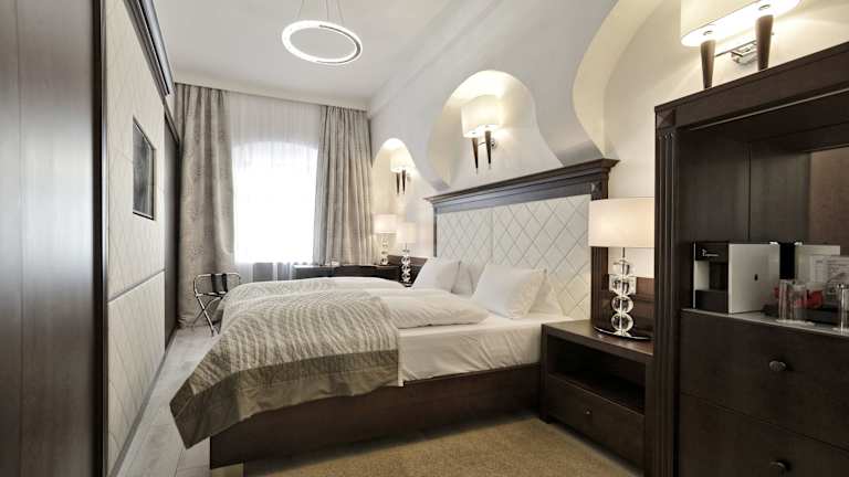 Das Hotel Grand befindet sich in bester Lage direkt am historischen Hauptplatz von Český Krumlov. Von hier aus können Sie bequem zu Fuß die beeindruckende Burganlage Český Krumlov erkunden, die nur wenige Gehminuten entfernt ist. Die Stadt bietet zudem eine malerische Umgebung, die sich perfekt zum Wandern und Kanufahren eignet. Tauchen Sie ein in die Schönheit dieser historischen Stadt und genießen Sie die einzigartige Atmosphäre.