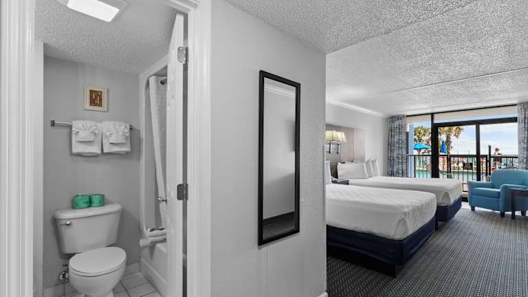 Verbringen Sie Ihren Urlaub im Hotel Grande Shores in Myrtle Beach und genießen Sie den atemberaubenden Meerblick. Das Hotel bietet eine Vielzahl von Annehmlichkeiten wie Pools, Lazy Rivers und einen Whirlpool. Die Zimmer sind komfortabel eingerichtet und verfügen über Annehmlichkeiten wie einen Kühlschrank und kostenloses WLAN. Genießen Sie köstliche Speisen im hoteleigenen Restaurant und entspannen Sie sich in den verschiedenen Whirlpools. Das Hotel bietet auch Meeting-Einrichtungen und einen Fitnessraum. Erkunden Sie die Umgebung und besuchen Sie Attraktionen wie T.I.G.E.R.S. Preservation Station und Pine Lakes Country Club.