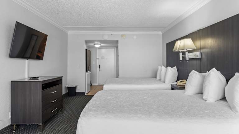 Die Zimmer im Grande Shores Hotel sind komfortabel und gemütlich eingerichtet und bieten Annehmlichkeiten wie einen kleinen Kühlschrank. Einige der Suiten verfügen über eine voll ausgestattete Küche, einen Essbereich und einen eigenen Balkon. Zusätzlich gibt es einen Kabel-TV, einen DVD-Player und kostenlose DVD-Ausleihen.