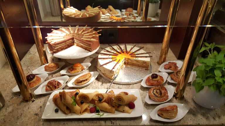 Ein reichhaltiges Frühstück wird täglich serviert. Im hauseigenen Café und der Konditorei können Gäste eine Auswahl an leckeren Kuchen, Torten und anderen süßen Köstlichkeiten genießen.