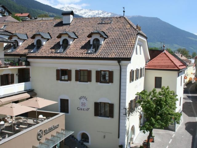 Das historische, familiengeführte Hotel Greif wird in der 4. Generation von der Familie Sagmeister geführt. Das Hotel ist in einem tiels historischen Gebäude untergebracht und bietet den Gästen 15 individuell gestaltete Zimmer und Appartements. Herzstück des Greif ist die Küche und Restaurants. Neben der typischen Südtiroler Küche hat sich das Greif auf die vegetarische Vollwertküche spezialisiert.