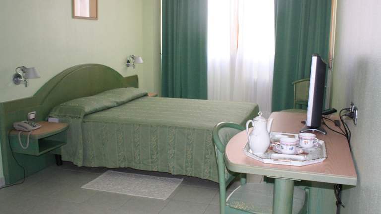 Die Zimmer im Hotel Grillo sind komfortabel und bieten alles, was Sie für einen angenehmen Aufenthalt benötigen. Jedes Zimmer verfügt über ein eigenes Bad, einen TV und entweder eine Klimaanlage oder eine Heizung, um sicherzustellen, dass Sie sich während Ihres Aufenthalts wohl fühlen. Der Ausblick aus den Zimmern bietet einen Blick auf die Stadt und trägt zur entspannten Atmosphäre bei.
