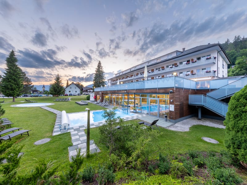 Ergänzt wird dieses Angebot durch unser wunderschön gestaltetes Wellnessparadies mit In- und Outdoorpool, Whirlpool, Saunalandschaft mit Aromasauna, Finnischer Sauna, Orientbad, Dschungelbad sowie Infrarot-Wärmekabine und großzügiger Liegewiese. Das „Wellnesshaus" bietet zudem alles was zur Erholung, Entspannung und Fitness im Urlaub beiträgt – von Massagen jeder Art, Nordic-Walking und vieles mehr. Unterhaltung bietet auch unsere Kegelbahn. Für unsere kleinen Gäste stehen ein großzügiger Kinderspielplatz, Kinderspielzimmer mit Playstation zur Verfügung und im Sommer sorgt unser „Mini-Club“ mit Betreuung für Spaß und Spiel. Geführte Wanderungen im Sommer zeigen Ihnen Naturschönheiten unserer Region und im Winter steigen Sie direkt vis-à-vis unseres Hauses in eines der schönsten Loipennetze Österreichs (130km doppelt gespurte Loipe) oder in den Gratisskibus auf die „Neue Tauplitz“ ein.