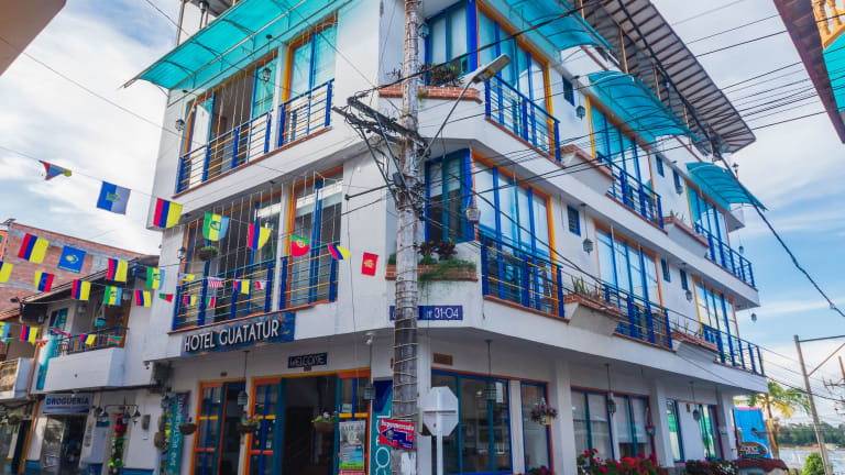 Verbringen Sie Ihren Aufenthalt im Hotel Guatatur und genießen Sie den atemberaubenden Blick auf die Stadt Guatapé und den See von Ihrem eigenen Balkon aus. Die stilvoll eingerichteten Zimmer, das WLAN und die vielfältigen Freizeitmöglichkeiten in der Umgebung machen Ihren Aufenthalt zu einem unvergesslichen Erlebnis. Beginnen Sie den Tag mit einem reichhaltigen Frühstücksbuffet und lassen Sie sich von der Dachterrasse mit Panoramablick verzaubern. Entdecken Sie die Schönheit der Kolonialstadt und besuchen Sie das nahegelegene Stadtmuseum und das historische Kloster Santa María de la Epfianía.