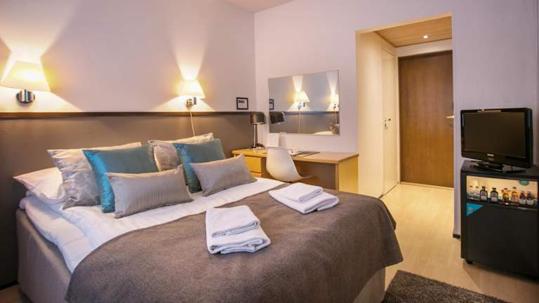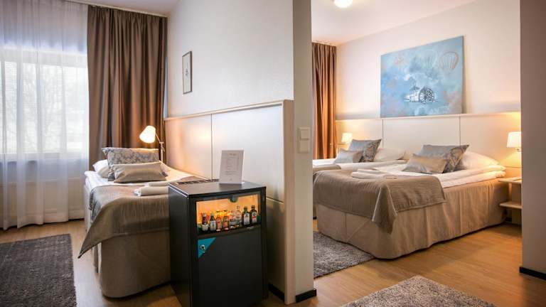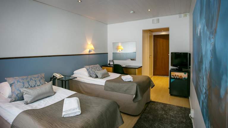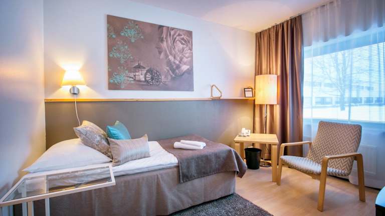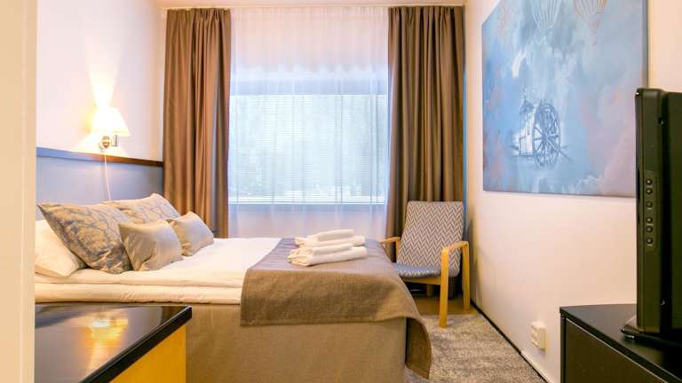 Die Zimmer im Hotelli Gustavelund sind mit einem Schreibtisch, einem Flachbild-TV, einem eigenen Badezimmer, Bettwäsche und Handtüchern ausgestattet. Jedes Zimmer verfügt zudem über einen Kleiderschrank.