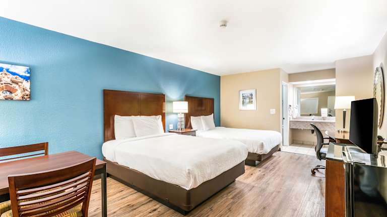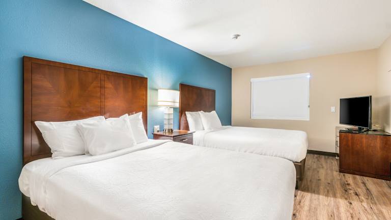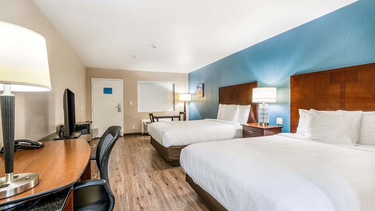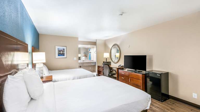 Die Zimmer im Hotel Hacienda at Ontario Ranch sind mit Kabel-TV ausgestattet, das erweiterte Kanäle bietet. Jedes Zimmer verfügt über ein eigenes Bad, einen Kühlschrank sowie eine Mikrowelle. Zudem ist ein Schreibtisch in jedem Zimmer vorhanden.