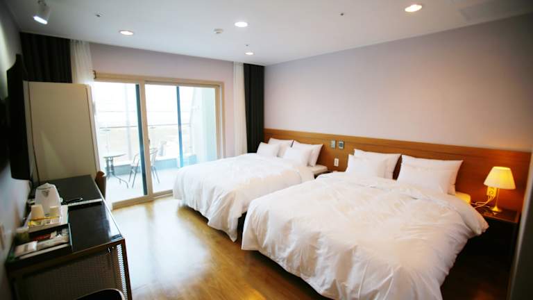 Die Zimmer im Hotel Haemaru sind geräumig und bieten einen eigenen Balkon, auf dem Sie die frische Luft genießen können. Jedes Zimmer verfügt über eine Klimaanlage, einen Flachbild-Kabel-TV, einen Wasserkocher und einen Schreibtisch. Das private Badezimmer ist mit einer Dusche, einem Bidet, einem Haartrockner und kostenlosen Pflegeprodukten ausgestattet.