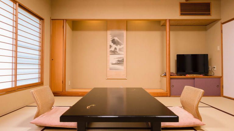Die Zimmer im Hotel Hagoromo sind im traditionellen japanischen Stil eingerichtet und bieten eine ruhige und entspannende Atmosphäre. Die Zimmer verfügen über Tatami-Böden aus gewebtem Stroh und einen niedrigen Tisch mit Sitzkissen. Jedes Zimmer ist mit einem TV, einem Safe und einem eigenen Bad ausgestattet. Genießen Sie die authentische japanische Atmosphäre und den Komfort dieser einzigartigen Unterkunft.