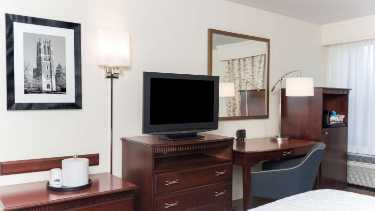 Die 86 Nichtraucherzimmer im Hampton Inn East Lansing sind komfortabel eingerichtet und bieten Annehmlichkeiten wie einen Sitzbereich und einen großen Schreibtisch. Jedes Zimmer verfügt über eine Kaffeemaschine und kostenfreie Pflegeprodukte. WLAN ist im gesamten Hotel verfügbar.
