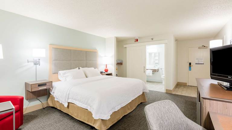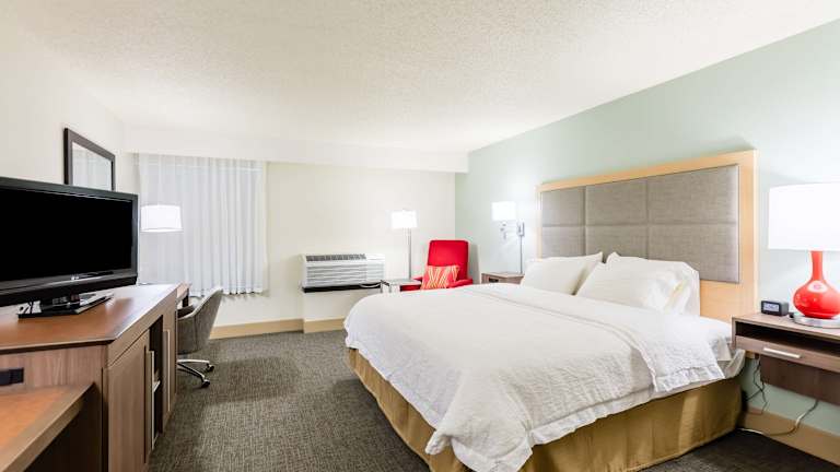 Das Hampton Inn Rochester bietet 104 Nichtraucherzimmer und 5 Suiten auf 3 Etagen. Die Zimmer sind komfortabel eingerichtet und verfügen über Annehmlichkeiten wie eine individuell steuerbare Klimaanlage, ein Kingsize-Bett, ein Sofabett, einen Schreibtisch, einen Kühlschrank, eine Mikrowelle, eine Tee-/Kaffeemaschine, einen Fernseher mit Satelliten-/Kabelempfang, ein Telefon mit Direktwahl, kostenloses WLAN und ein Badezimmer mit Dusche oder Badewanne und Haartrockner. Rollstuhlgerechte Zimmer mit barrierefreiem Badezimmer sind ebenfalls verfügbar.