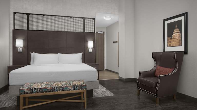 Die Zimmer im Hampton Inn and Suites Austin University Capitol sind hell und modern eingerichtet. Jedes Zimmer verfügt über einen Schreibtisch, einen ergonomischen Stuhl, kostenfreies WLAN und einen Flachbild-TV mit kostenfreien Filmkanälen. Zur weiteren Ausstattung gehören eine Kaffeemaschine, ein Kühlschrank und eine Mikrowelle.