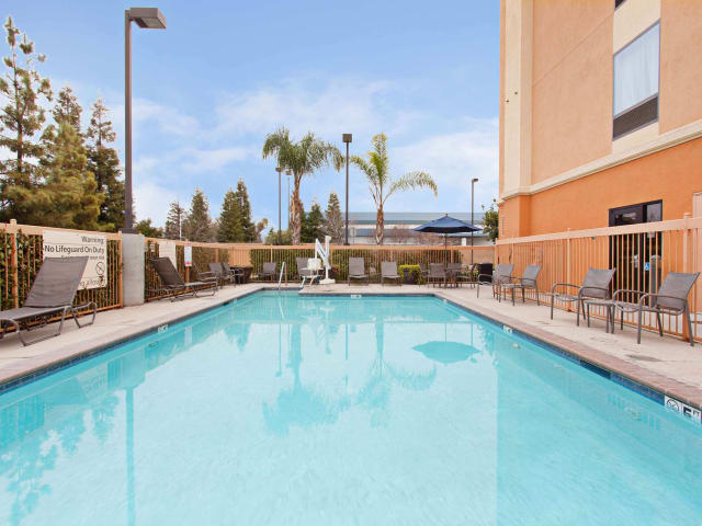 Das Hampton Inn & Suites Clovis Airport North in Clovis, Kalifornien, ist ein ideales Hotel für Reisende, die Wert auf Komfort und Bequemlichkeit legen. Mit seiner günstigen Lage in der Nähe der Fresno State University und des Fresno Yosemite Flughafens bietet das Hotel seinen Gästen kostenfreies WLAN und ein tägliches warmes Frühstück. Die Zimmer sind modern eingerichtet und verfügen über Annehmlichkeiten wie einen Flachbild-LCD-TV, eine Kaffeemaschine und einen Schreibtisch. Gäste können im Fitnessraum trainieren oder im Außenpool schwimmen. Das Hotel bietet außerdem Annehmlichkeiten wie einen Gepäckraum und einen Waschsalon. In der Umgebung gibt es viele Attraktionen wie die Clovis Botanical Gardens, die Cobb Ranch und den San Joaquin River, die alle nur eine kurze Autofahrt entfernt sind.