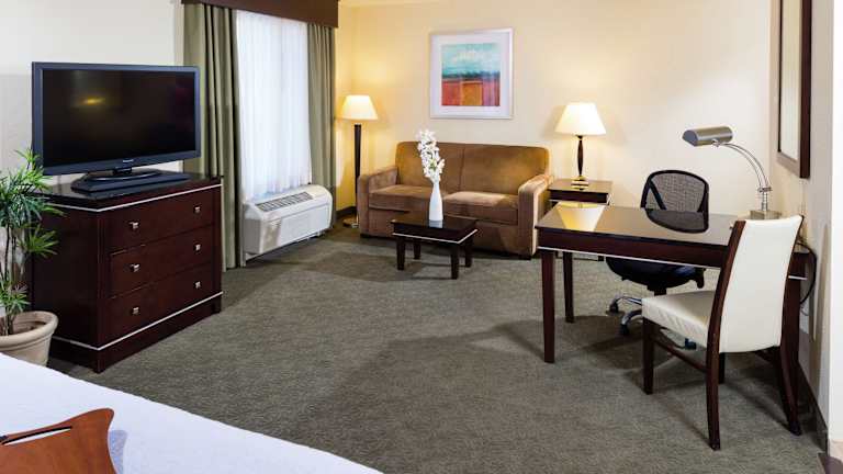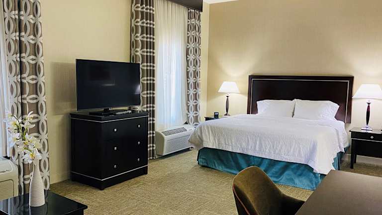 Die Zimmer im Hampton Inn & Suites Las Vegas South sind komfortabel eingerichtet und bieten Annehmlichkeiten wie einen 42-Zoll-Flachbild-HD-Kabel-TV, In-Room-Filme, kostenfreies WLAN, eine Mikrowelle, einen kleinen Kühlschrank, eine Kaffeemaschine und einen Schreibtisch. Die Zimmer sind geräumig und bieten alle Annehmlichkeiten für einen angenehmen Aufenthalt.