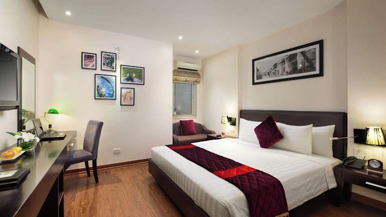 Die klimatisierten Zimmer im Hanoian Central Hotel & Spa bieten einen komfortablen Rückzugsort nach einem ereignisreichen Tag in der Stadt. Mit kostenfreiem WLAN, einem Laptop und einem Flachbild-TV bleiben Sie stets verbunden und unterhalten. Jedes Zimmer verfügt über ein eigenes Badezimmer mit Pflegeprodukten und einem Haartrockner. Von den Zimmern aus haben Sie einen Blick auf die malerischen Straßen von Hanoi. Zur Ausstattung gehören auch ein Kabel-TV, ein Kühlschrank und ein Wasserkocher.