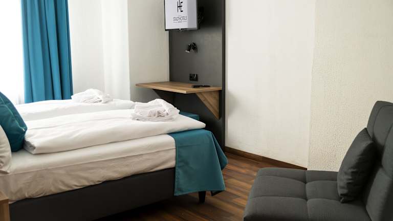 Die Zimmer im Hotel Hansa sind modern und komfortabel eingerichtet. Jedes Zimmer ist mit einem TV, einem Schreibtisch und einem eigenen Bad mit Haartrockner ausgestattet, um den Gästen ein wohnliches Gefühl zu vermitteln.