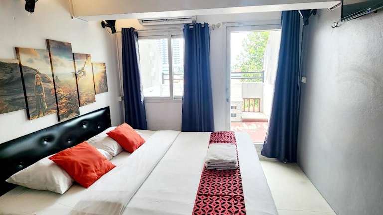 Die klimatisierten Zimmer im Happio - SHA Plus Certified Place sind individuell gestaltet und bieten modernen Komfort. Einige Zimmer verfügen über Fliesenböden, einen Fernseher und ein eigenes Badezimmer mit Warmwasserdusche. Die farbenfrohe Einrichtung sorgt für eine fröhliche und einladende Atmosphäre.