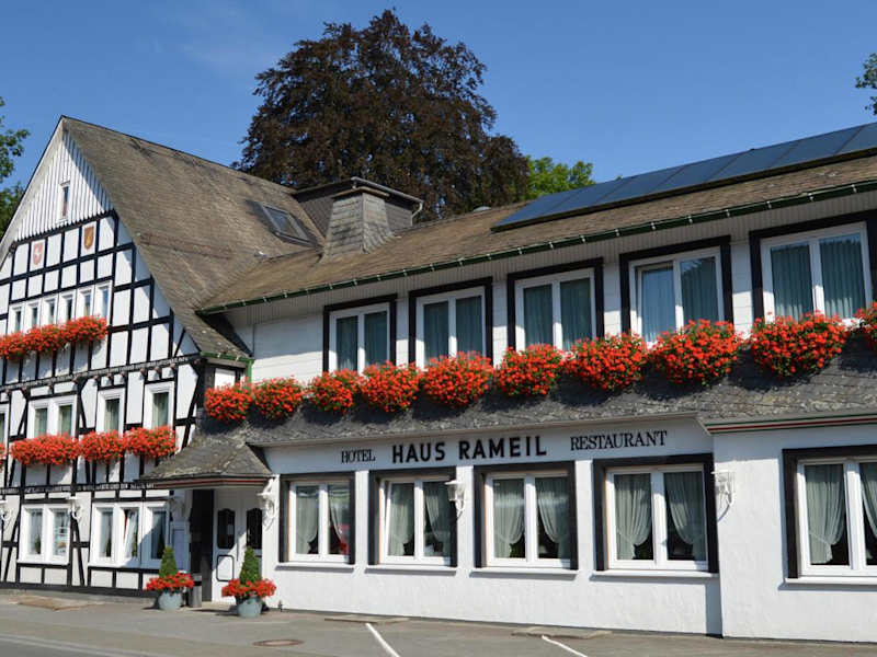 Das Hotel Haus Rameil befindet sich in Lennestadt im Ortsteil Saalhausen, einem ruhigen und idyllischen Teil der Stadt. Die Umgebung ist von wunderschönen Fachwerkhäusern und einer malerischen Landschaft geprägt. Die Waldlandschaft des Sauerlandes bietet zahlreiche Möglichkeiten zum Wandern, Radfahren und Motorradfahren. Das Stadtzentrum von Lennestadt und der Bahnhof Lennestadt-Altenhundem sind nur eine kurze Autofahrt entfernt.